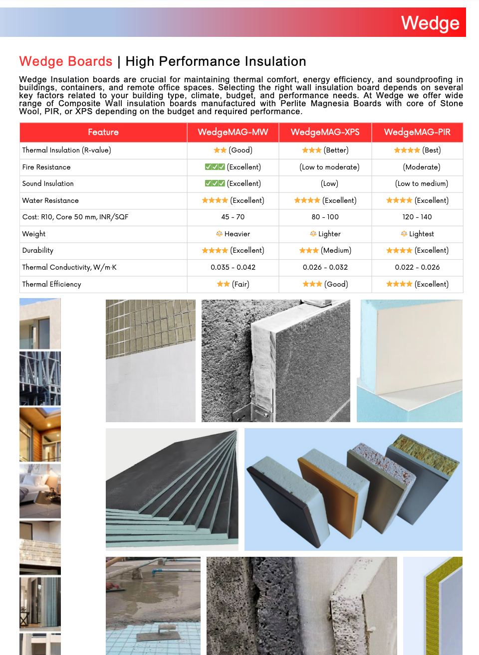 ✔ Fully supported by Wedge Insulation technical engineering team